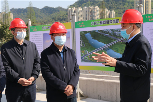 3月19日,副省長楊洪波一行赴雅安市調研重點項目推進工作,調研大興二橋項目建設情況,市委書記蘭開馳,副市長張橋陪同調研。