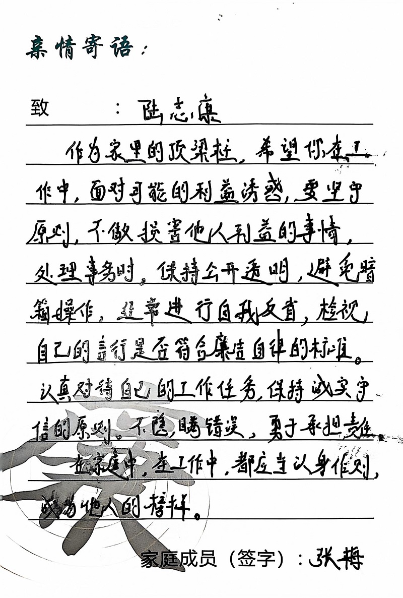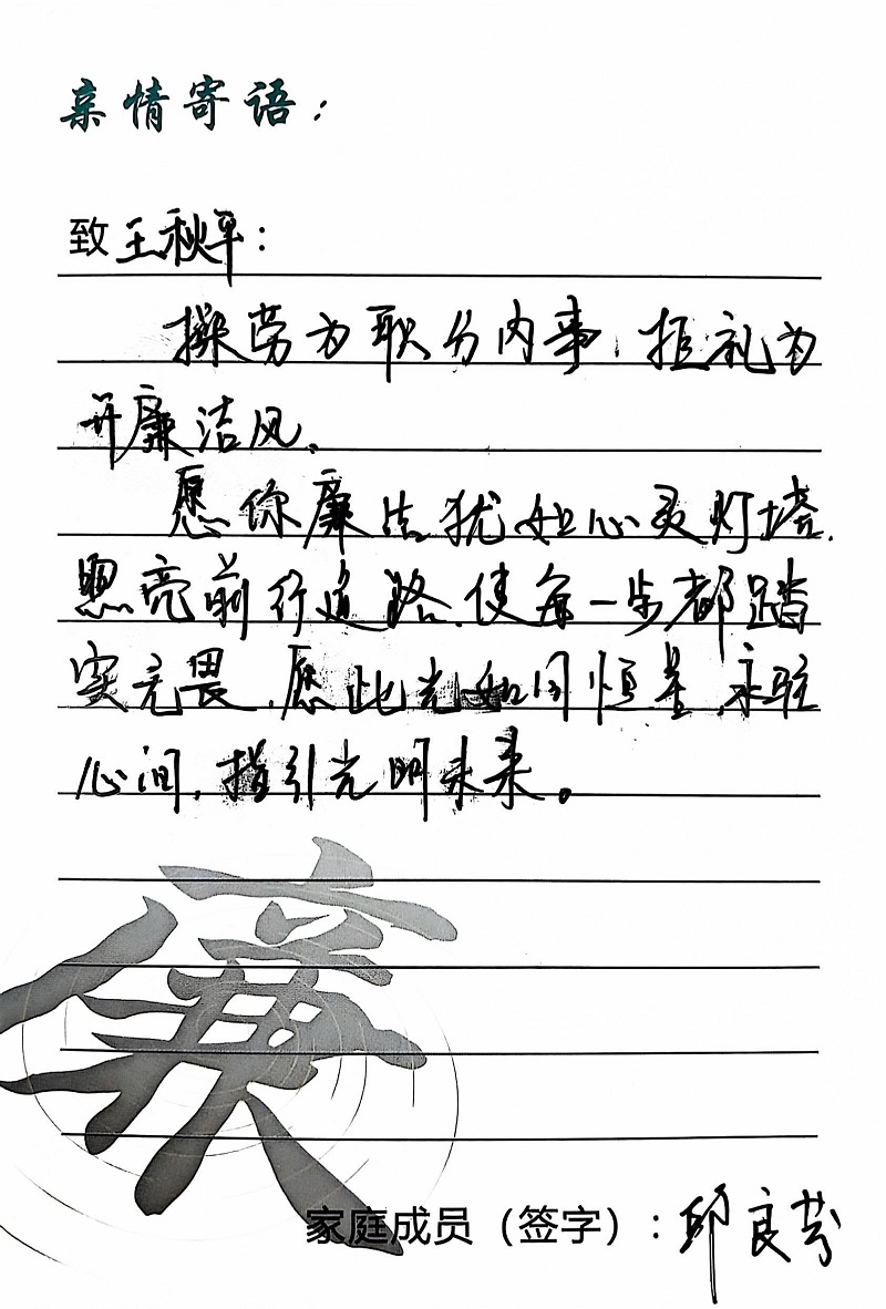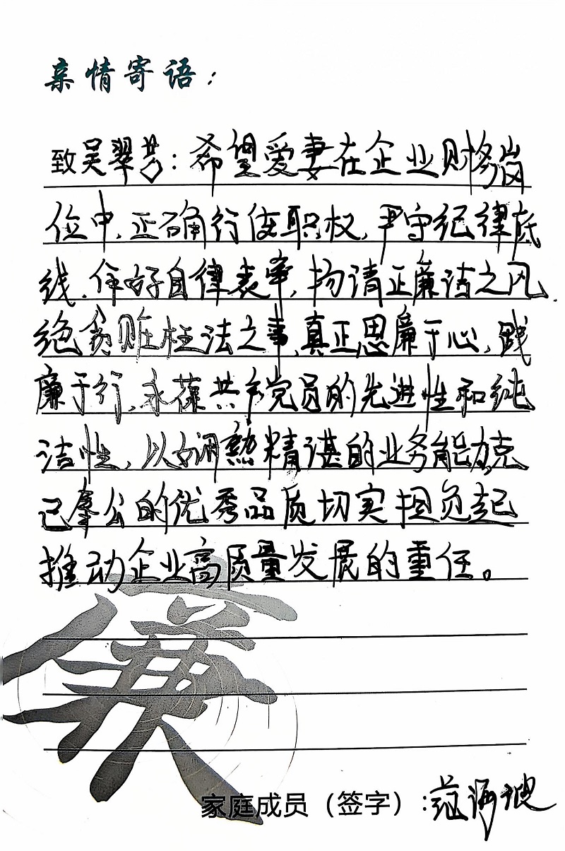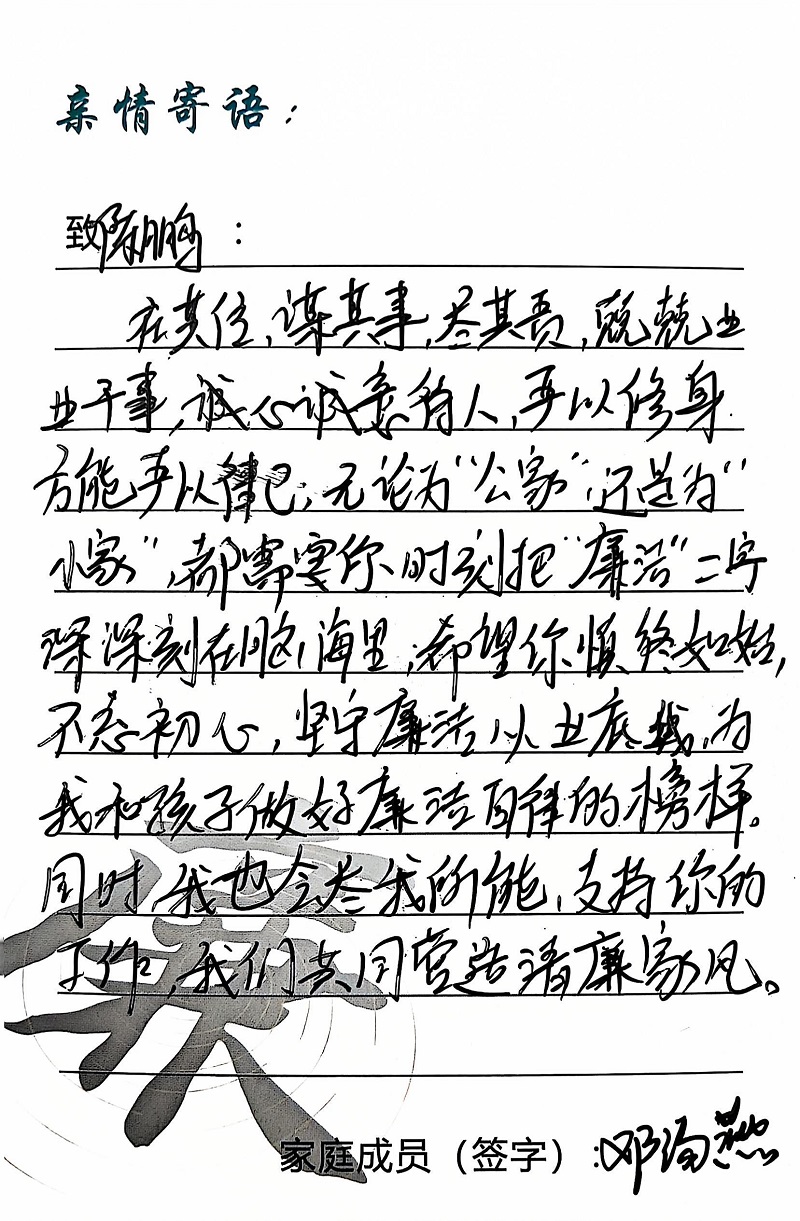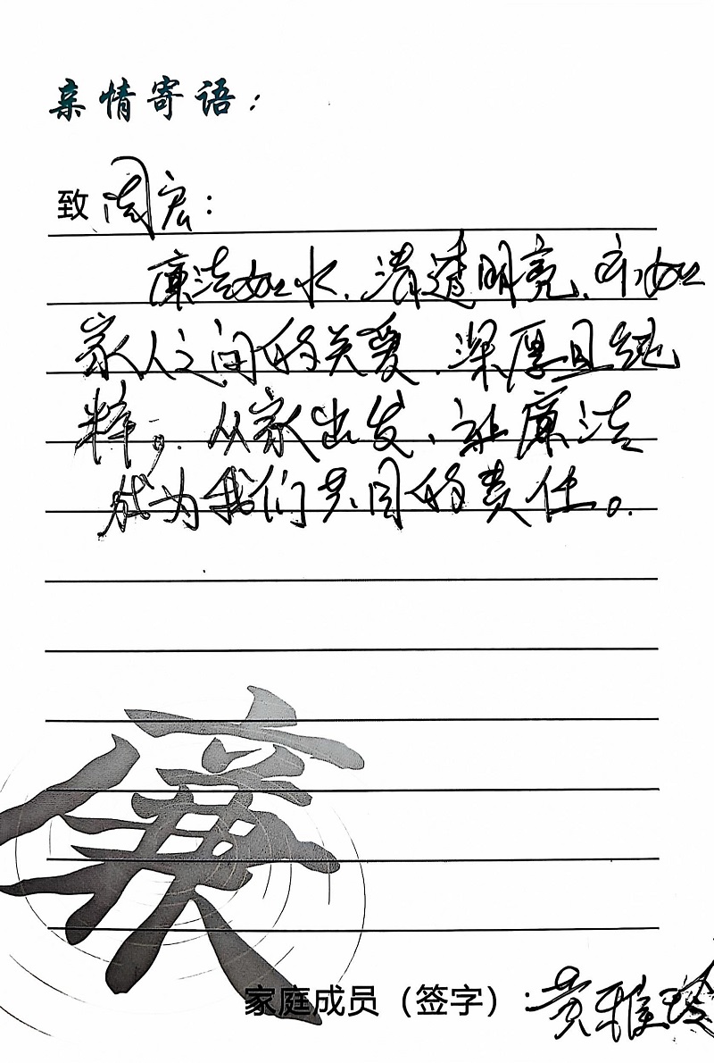 為深入學(xué)習(xí)黨的二十大精神,貫徹落實(shí)習(xí)近平總書記關(guān)于注重家庭家教家風(fēng)建設(shè)的重要論述,營造公司崇廉、尚廉、踐廉、助廉的良好氛圍,城投公司組織開展了“家滿清風(fēng)·廉潤城投”廉潔文化活動(dòng);顒(dòng)開展以來,共征集廉政寄語210余條。經(jīng)各部門、子公司推薦,城投公司相關(guān)部門審核,評(píng)選出優(yōu)秀廉潔寄語43條。現(xiàn)將優(yōu)秀廉政寄語分批次進(jìn)行展播,快來一起欣賞吧!