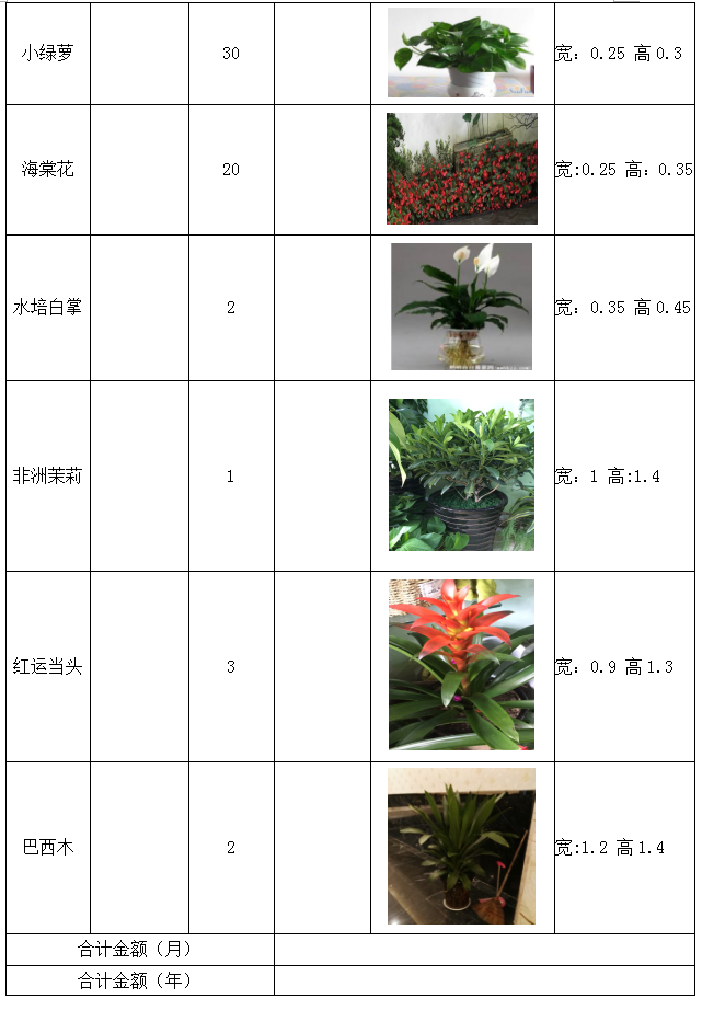 城投公司下屬子公司新辦公樓綠色植物租賃詢價(jià)函