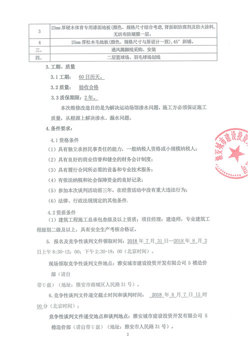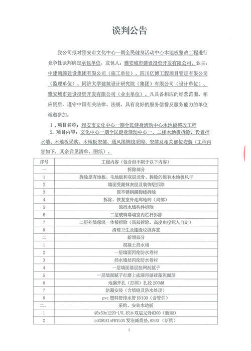 雅安市文化中心一期全民健身活動(dòng)中心木地板整改工程——競爭性談判公告