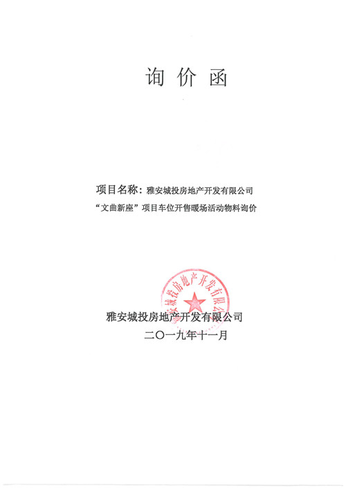 雅安城投房地產(chǎn)開(kāi)發(fā)有限公司詢價(jià)函