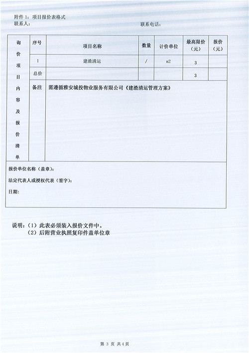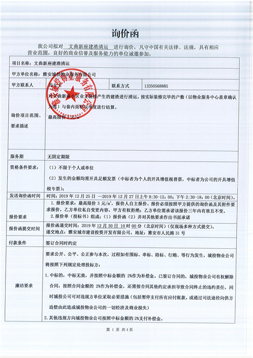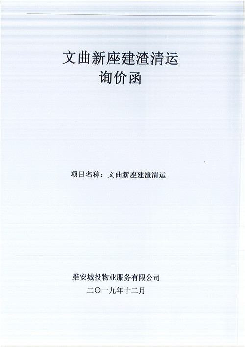 文曲新座建渣清運(yùn)詢(xún)價(jià)函