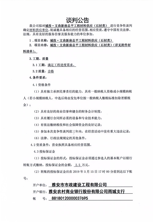 城投·文曲新座總平工程材料供應(石材類)競爭性談判公告