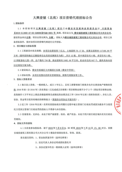 大興壹號(北苑)項(xiàng)目營銷代理招標(biāo)公告