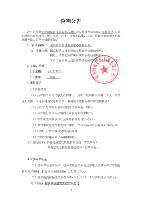 大興順路社區(qū)服務(wù)中心檢測服務(wù)競爭性談判公告