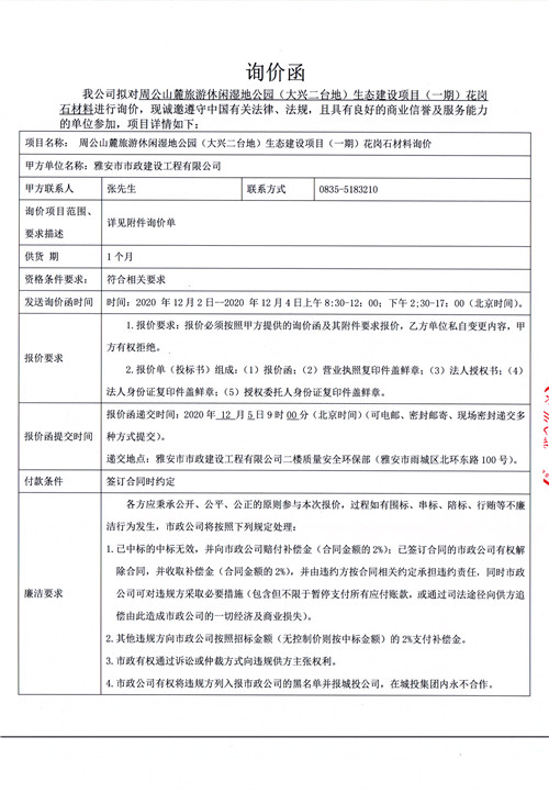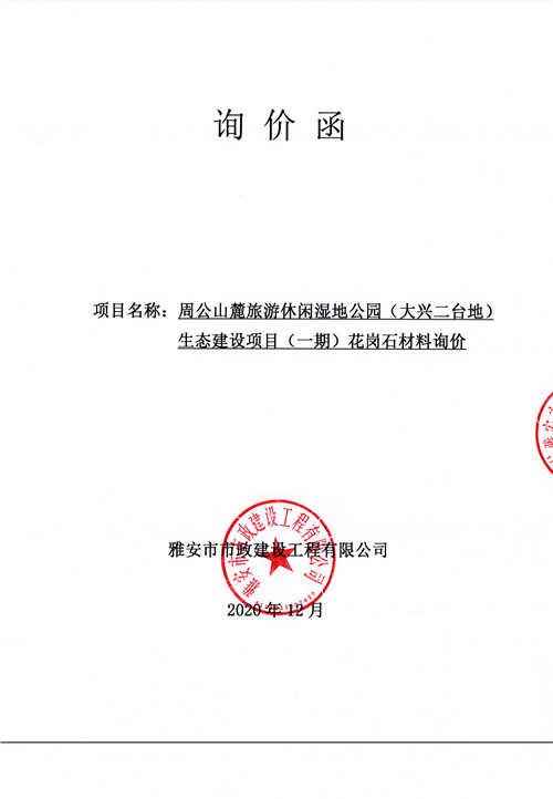 市政公司 周公山麓旅游休閑濕地公園(大興二臺地)生態(tài)建設項目(一期)花崗石材料詢價函