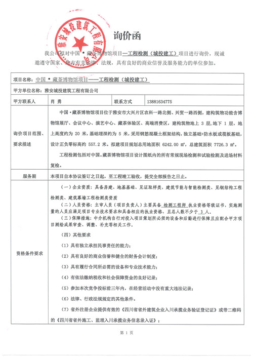 中國(guó)·藏茶博物館項(xiàng)目工程檢測(cè)單位詢(xún)價(jià)函(第二次).doc