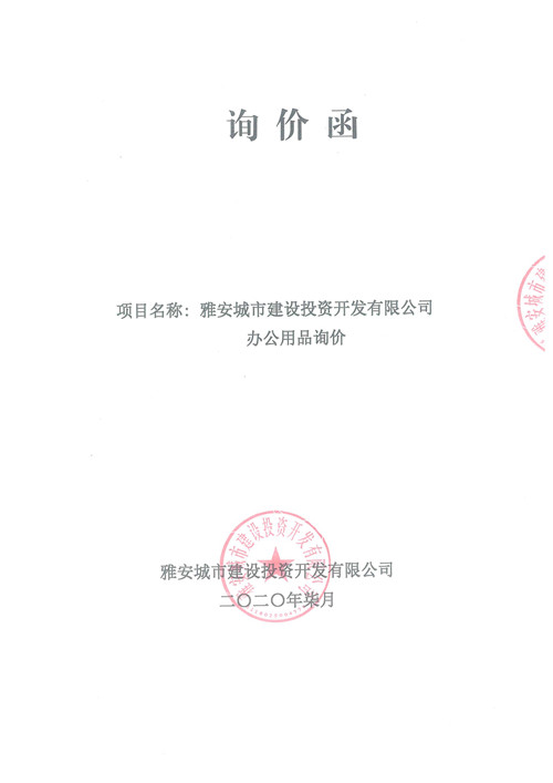 雅安城市建設(shè)投資開發(fā)有限公司辦公用品詢價