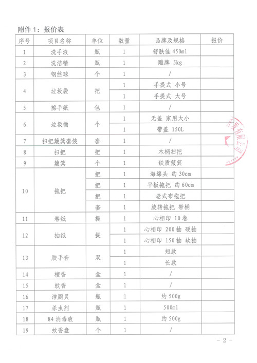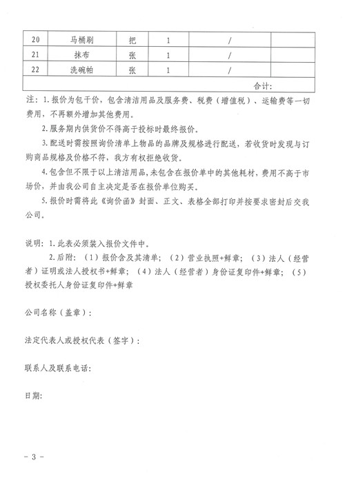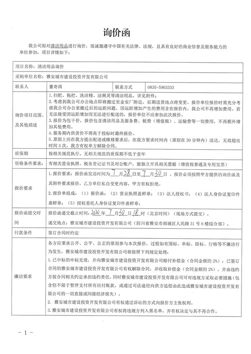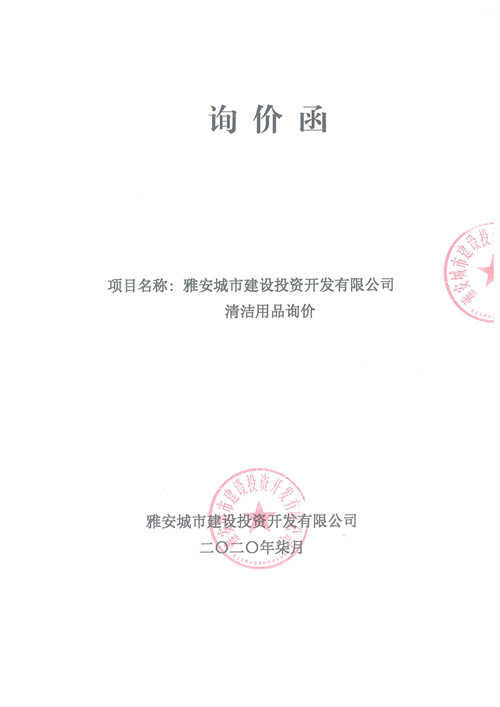 雅安城市建設(shè)投資開發(fā)有限公司清潔用品詢價(jià)函