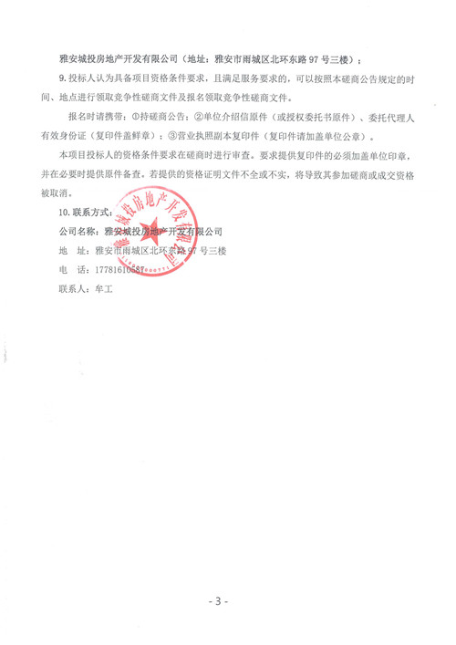 雅安城投房地產(chǎn)開發(fā)有限公司城投·文曲新座樓頂拆除及恢復(fù)工程(第二次)競爭性磋商公告