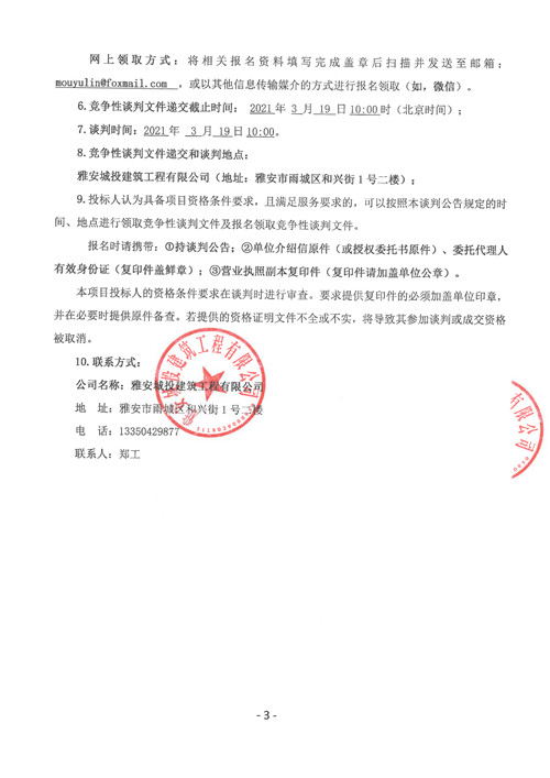 城投建工公司雅安市西康記憶生態(tài)文旅街區(qū)項(xiàng)目二號(hào)地塊土石方專業(yè)分包工程競(jìng)爭(zhēng)性談判公告