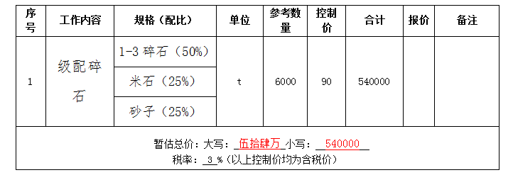2.1項(xiàng)目?jī)?nèi)容:雅安文教新城市政道路恢復(fù)重建項(xiàng)目(一標(biāo)段)級(jí)配碎石采購供貨商的確定,保障市政公司相關(guān)工程的順利進(jìn)行,具體貨物見材料清單(本招標(biāo)文件所附清單(數(shù)量、規(guī)格、種類)僅供參考,最終采購數(shù)量實(shí)際發(fā)生(分散采購)的為準(zhǔn))。