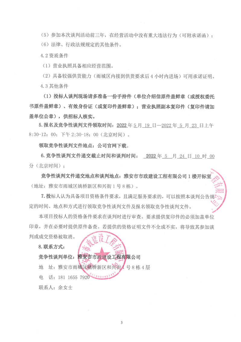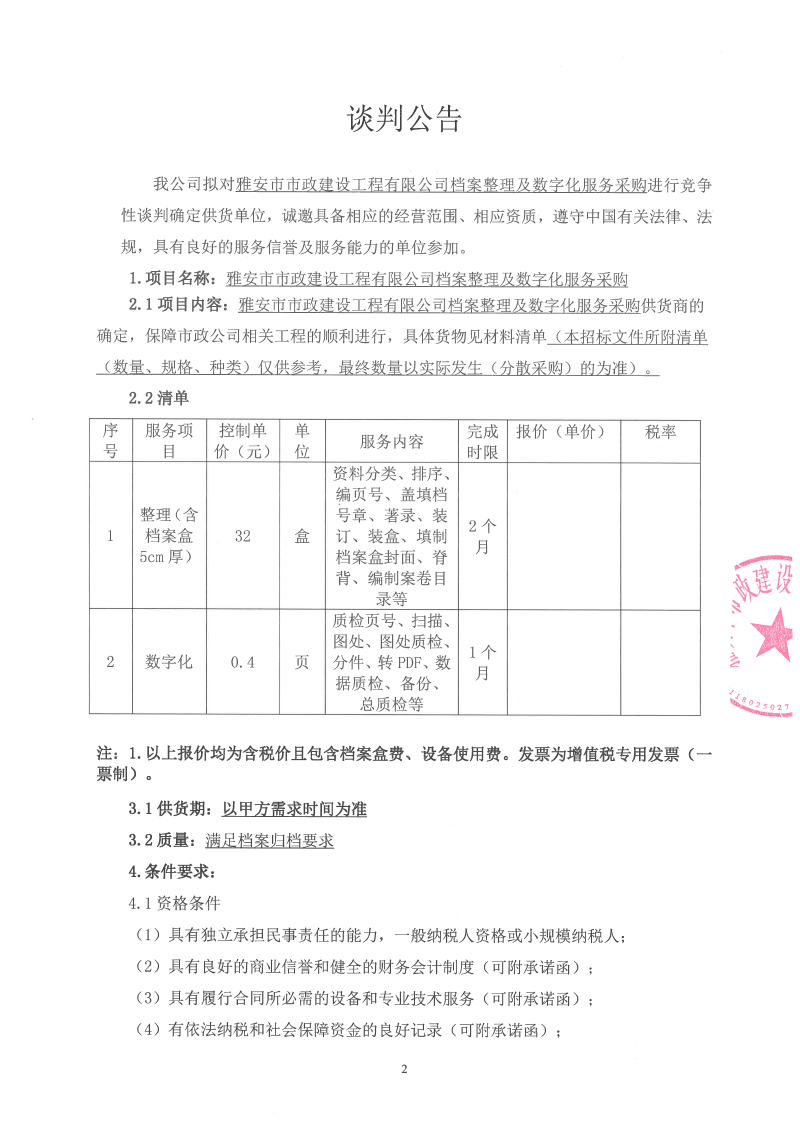 雅安市市政建設工程有限公司檔案整理及數(shù)字化服務采購競爭性談判公告
