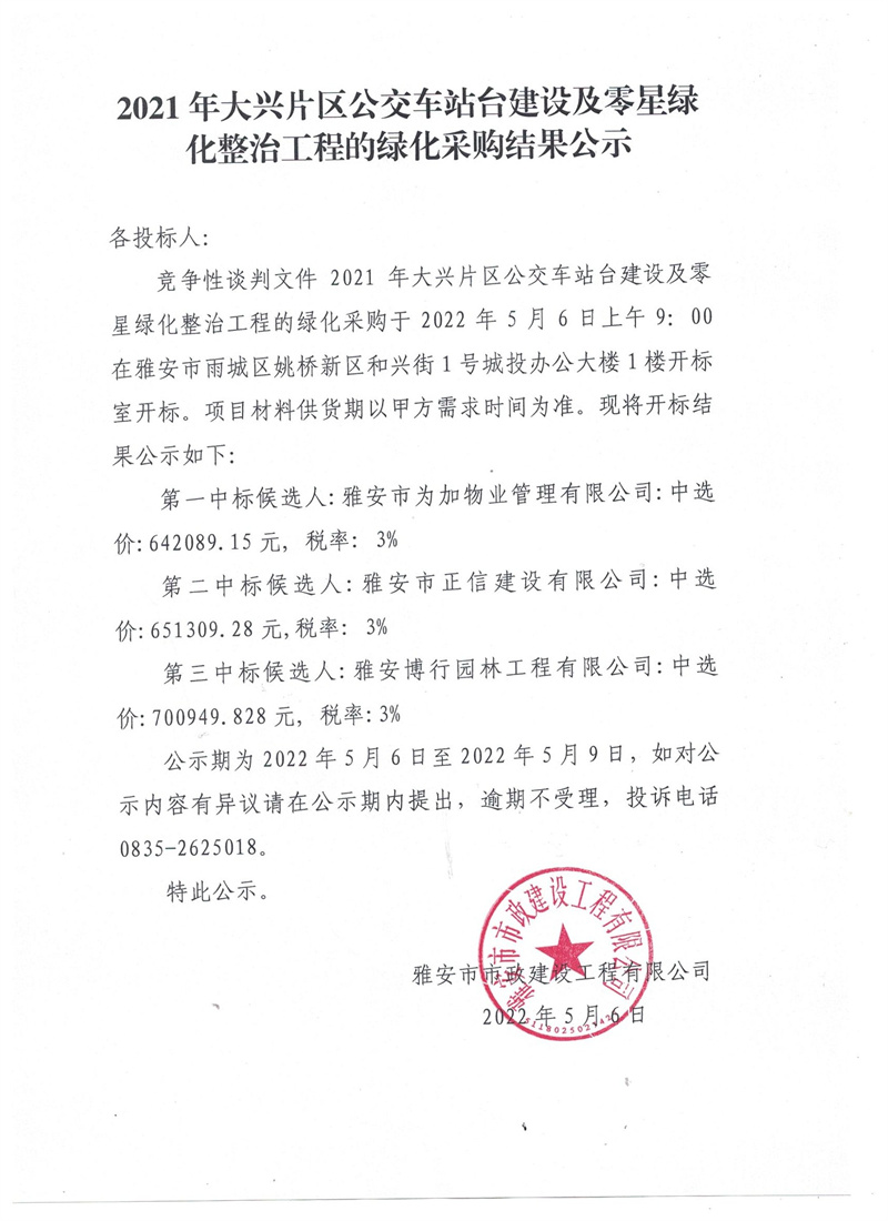 2021年大興片區(qū)公交站臺建設及零星綠地整治工程的綠化采購結(jié)果公示