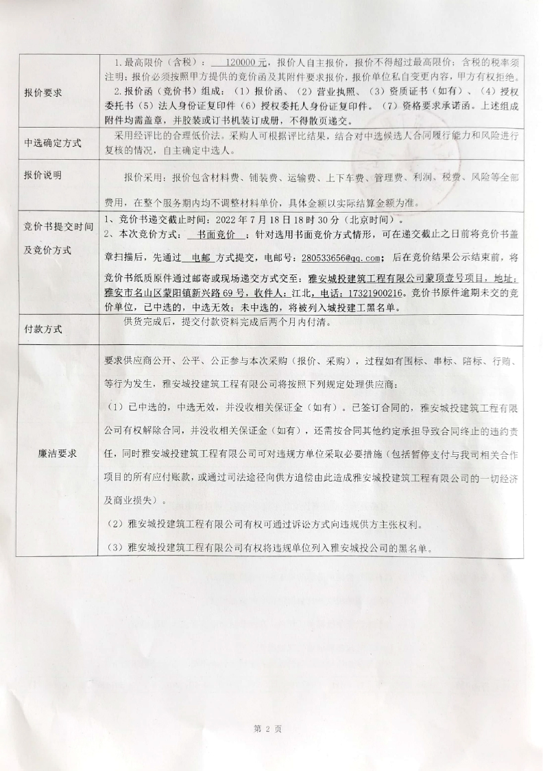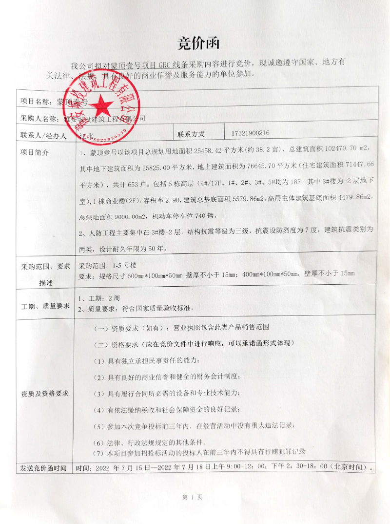 蒙頂壹號(hào)項(xiàng)目GRC線條采購競爭公告