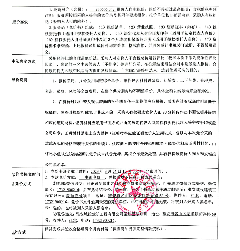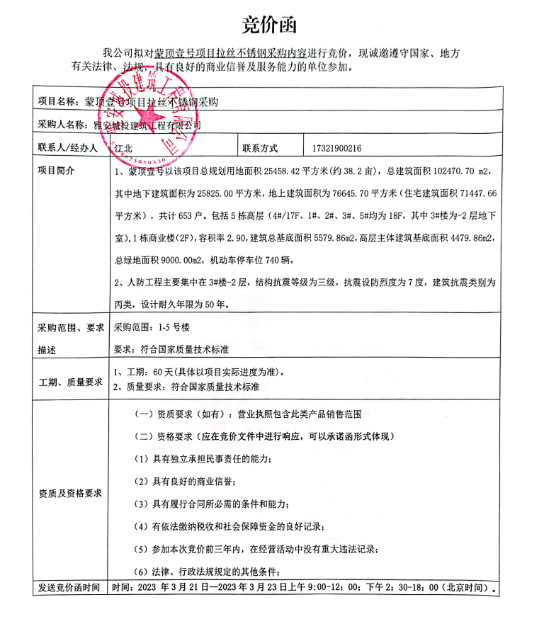 蒙頂壹號(hào)項(xiàng)目拉絲不銹鋼采購(gòu)競(jìng)價(jià)公告