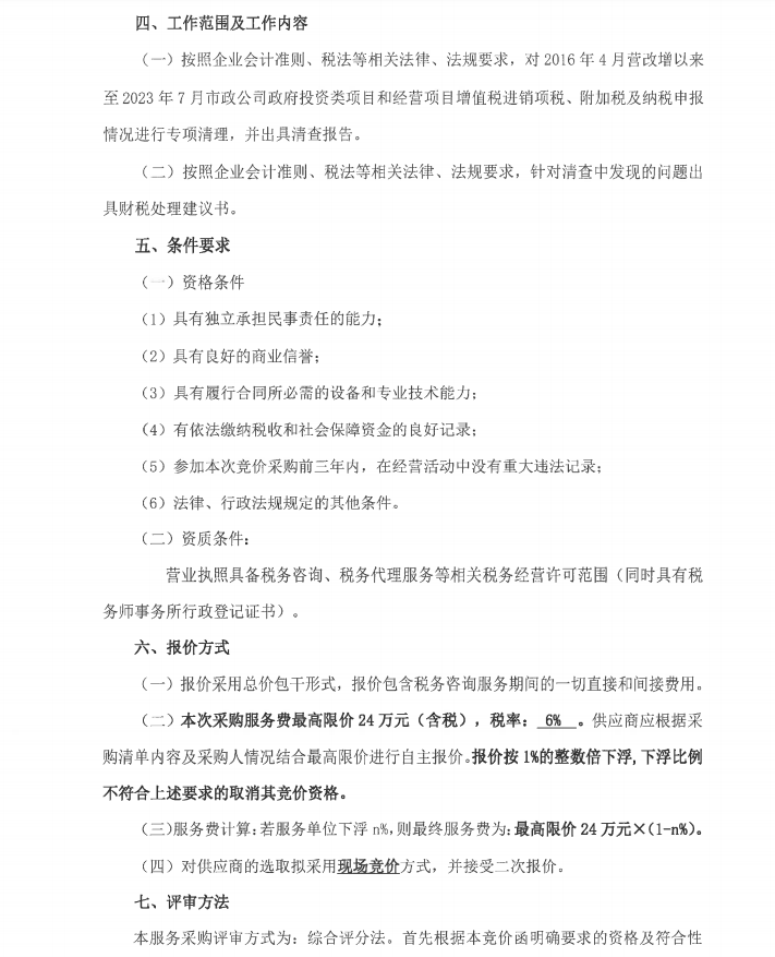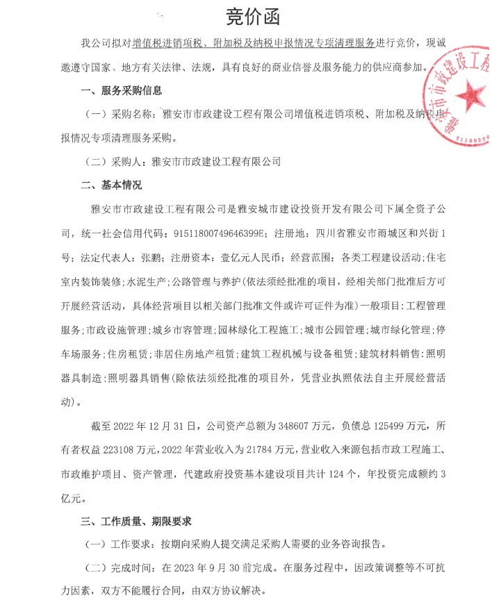 增值稅進銷項稅、附加稅及納稅申報情況專項清理服務競價公告