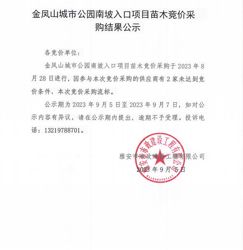 金鳳山城市公園南坡入口項(xiàng)目苗木采購競價采購結(jié)果公示
