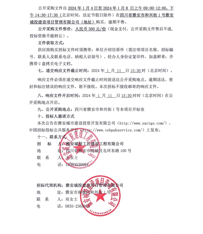 雅安市大興生態(tài)旅游建設(shè)項目欄桿采購項目公開采購邀請公告