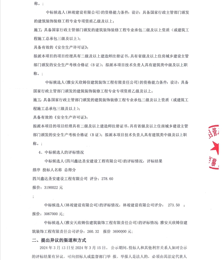 雅州壹號(hào)院項(xiàng)目售樓部和樣板間(3套)設(shè)計(jì)、施工項(xiàng)目(第二次)中標(biāo)候選人公示
