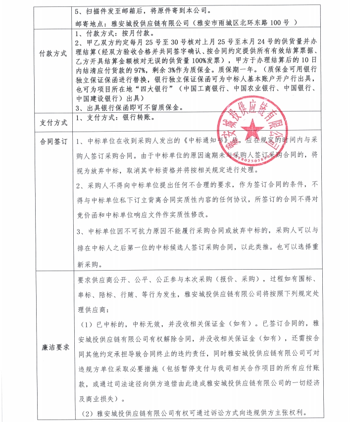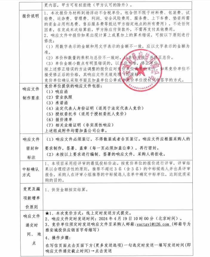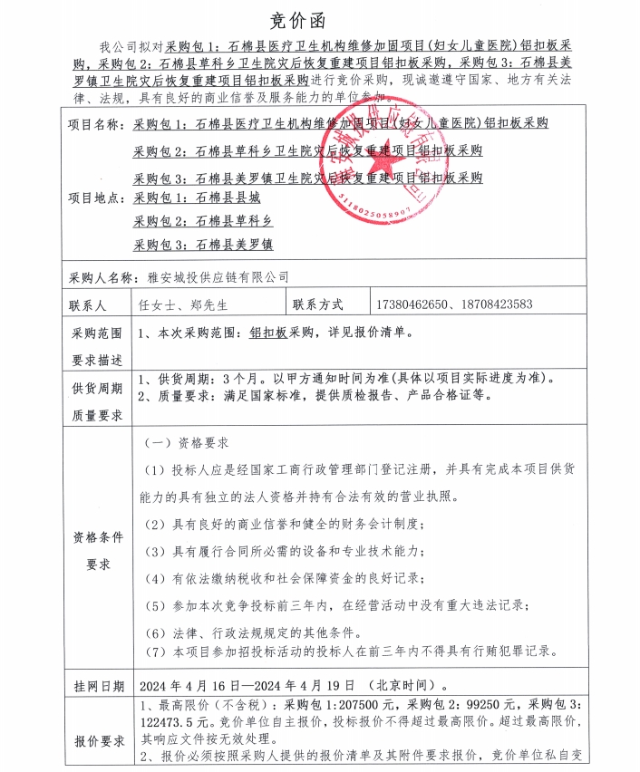 雅安城投供應(yīng)鏈有限公司鋁扣板采購競價(jià)公告