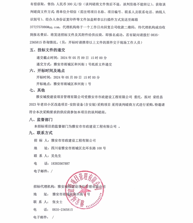 滎經(jīng)縣2023年老舊小區(qū)改造項目安防設(shè)備(含安裝)采購項目公告