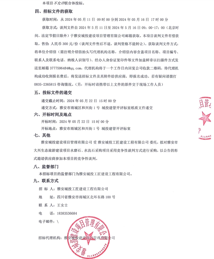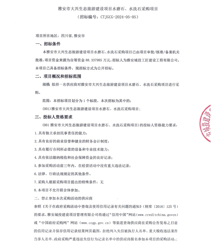 雅安市大興生態(tài)旅游建設(shè)項(xiàng)目水磨石、水洗石采購項(xiàng)目公告