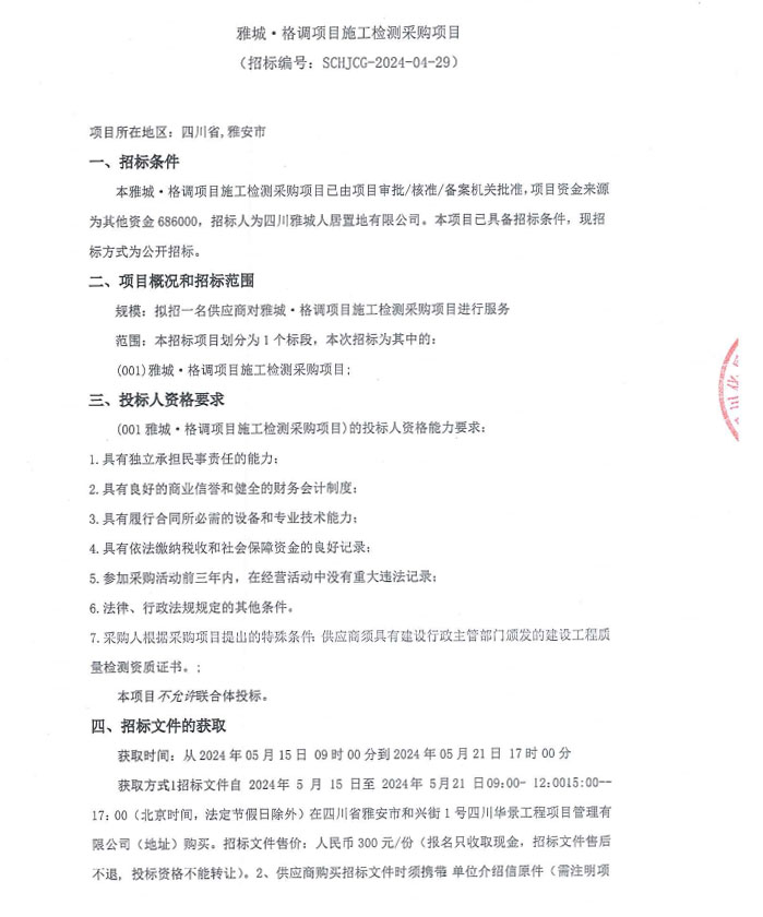 雅城·格調項目施工檢測采購項目公告