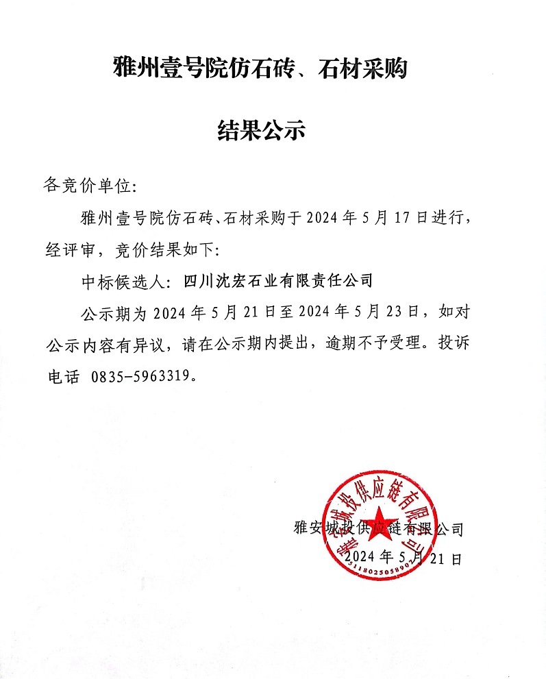 雅州壹號院仿石磚、石材采購結(jié)果公示