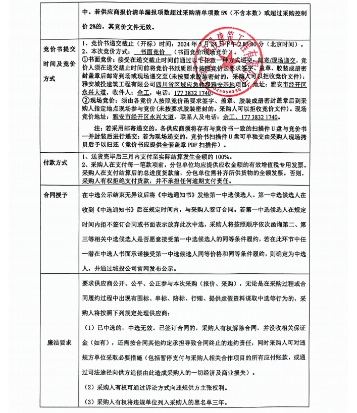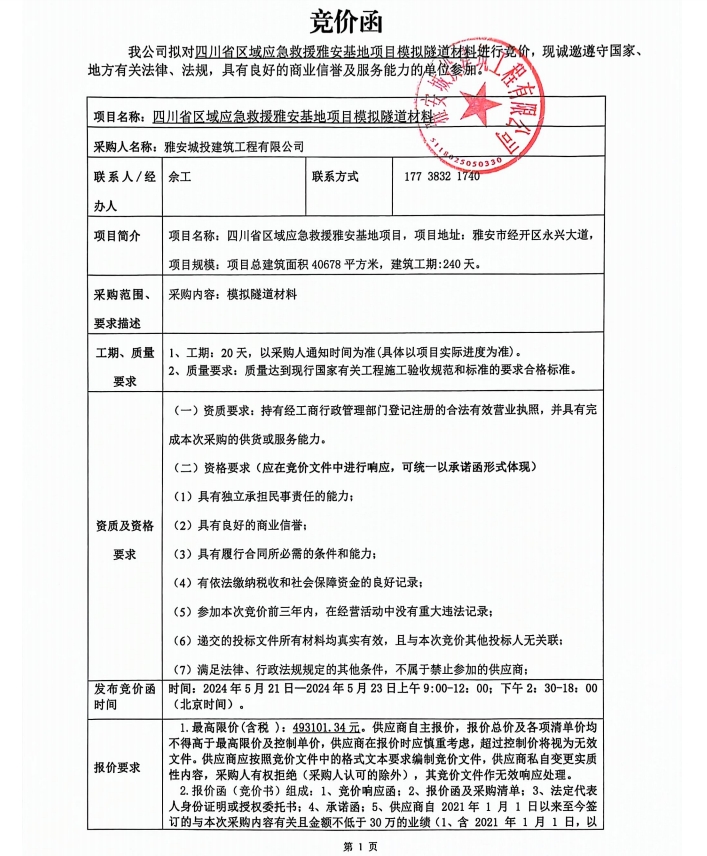 四川省區(qū)域應(yīng)急救援雅安基地項(xiàng)目模擬隧道材料競(jìng)價(jià)公告