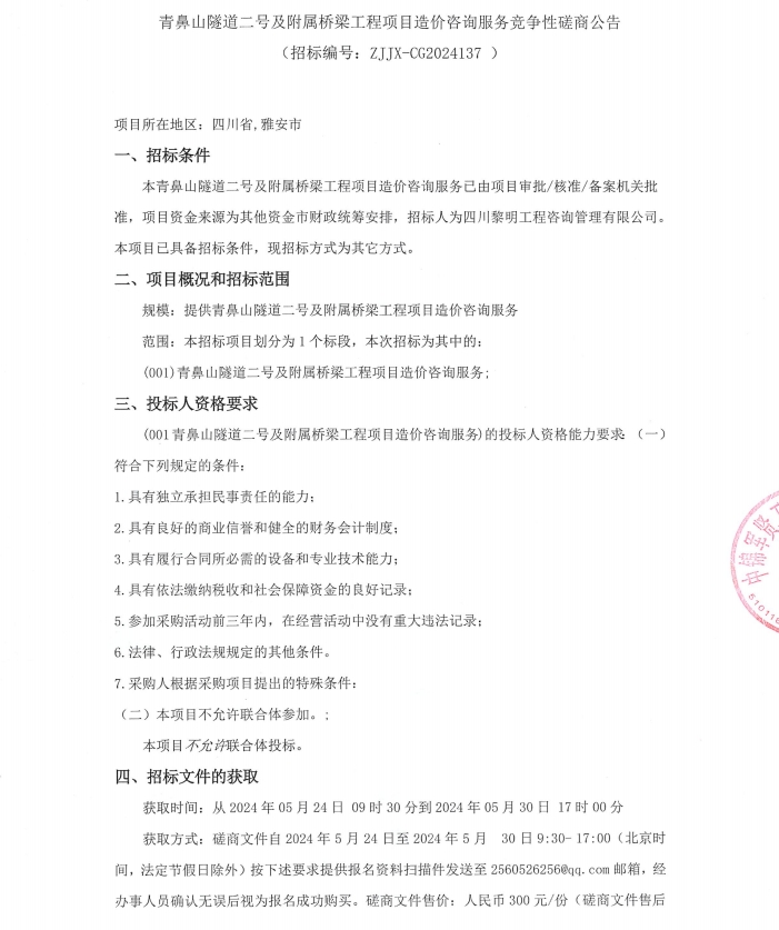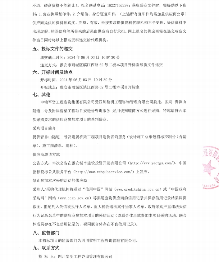 青鼻山隧道二號(hào)及附屬橋梁工程項(xiàng)目造價(jià)咨詢服務(wù)競爭性磋商公告