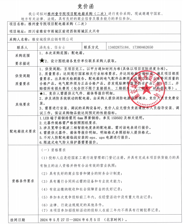 附件1:競(jìng)價(jià)函--雅州壹號(hào)院項(xiàng)目配電箱采購(二次)