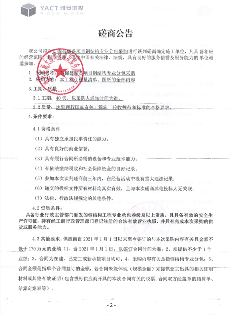 石棉縣儲(chǔ)備項(xiàng)目鋼結(jié)構(gòu)專(zhuān)業(yè)分包采購(gòu)談判磋商公告