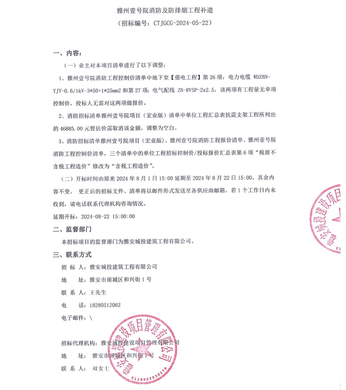雅州壹號院消防及防排煙工程補遺