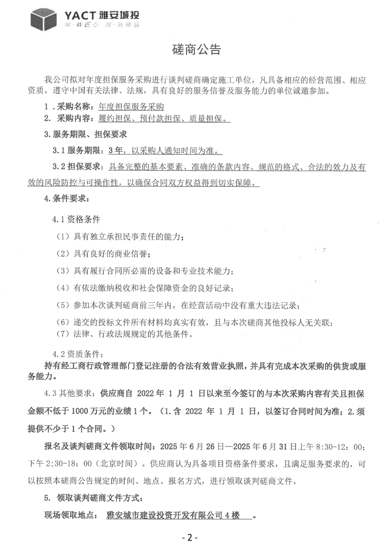 年度擔(dān)保服務(wù)采購(gòu)磋商公告