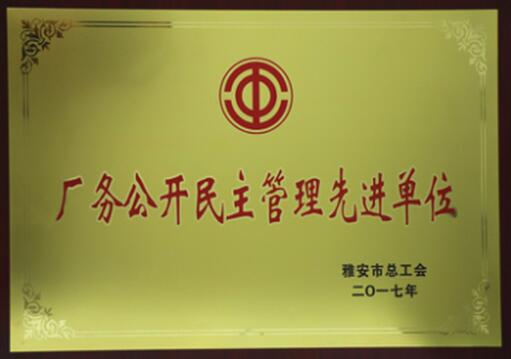 2017年7月 我公司被評為“全市廠務公開民主管理先進單位”